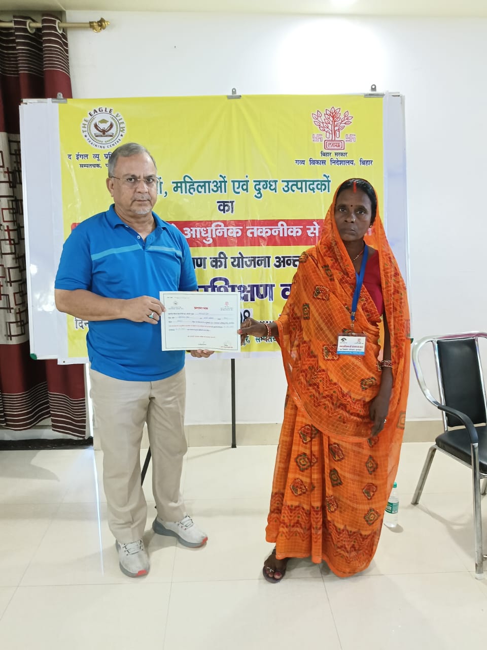भारत सरकार एवं बिहार सरकार द्वारा मान्यता प्राप्त द ईगल व्यू ट्रेनिंग सेन्टर ज़िलों की 90 महिलाओं को डेयरी फार्मिंग की आधुनिक तकनीक के बारे में 5 दिवसीय आवासीय प्रशिक्षण प्रदान कर रहा है। दूसरी ओर, सामाजिक उत्थान के क्षेत्र में महिलाएँ मज़बूत हो रही हैं। जिसमे अभी दिनांक 04-08-2025 से 16-08-2025 तक जिला बक्सर, भोजपुर, पटना, नालंदा का प्रशिक्षण सफलता पूर्वक करवा कर महिला उम्मीदवारों को प्रमाण पत्र प्रदान किया जा चूका है I और दिनांक 19-08-2025 से जिला शेखपुरा और नवादा की 90 महिलाओ का प्रशिक्षण शुरू हो चूका है I